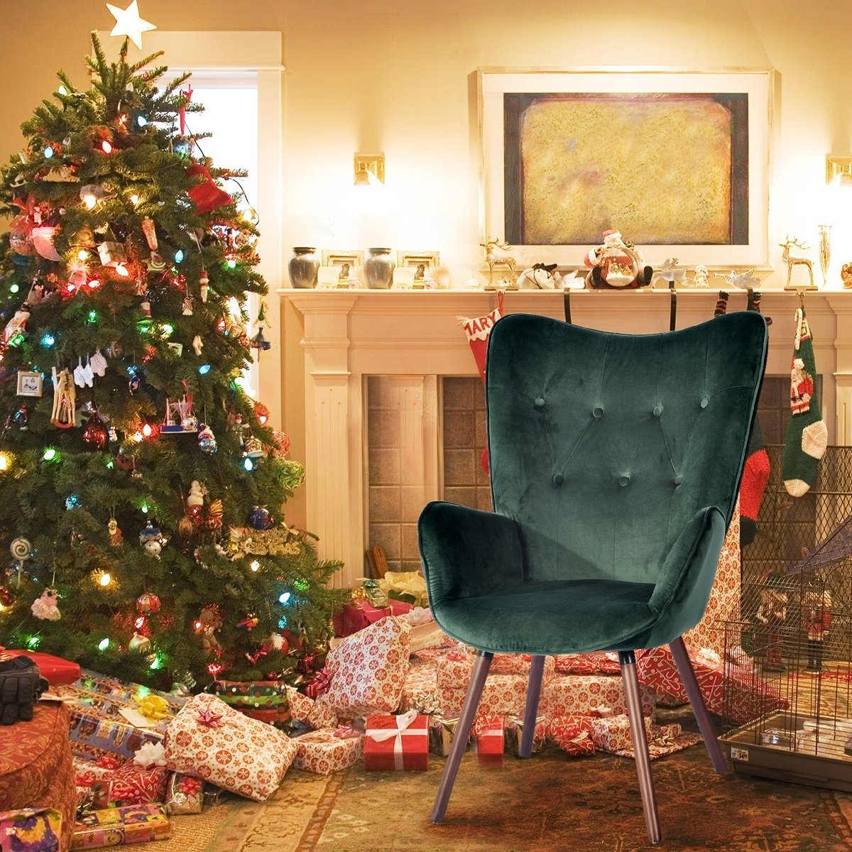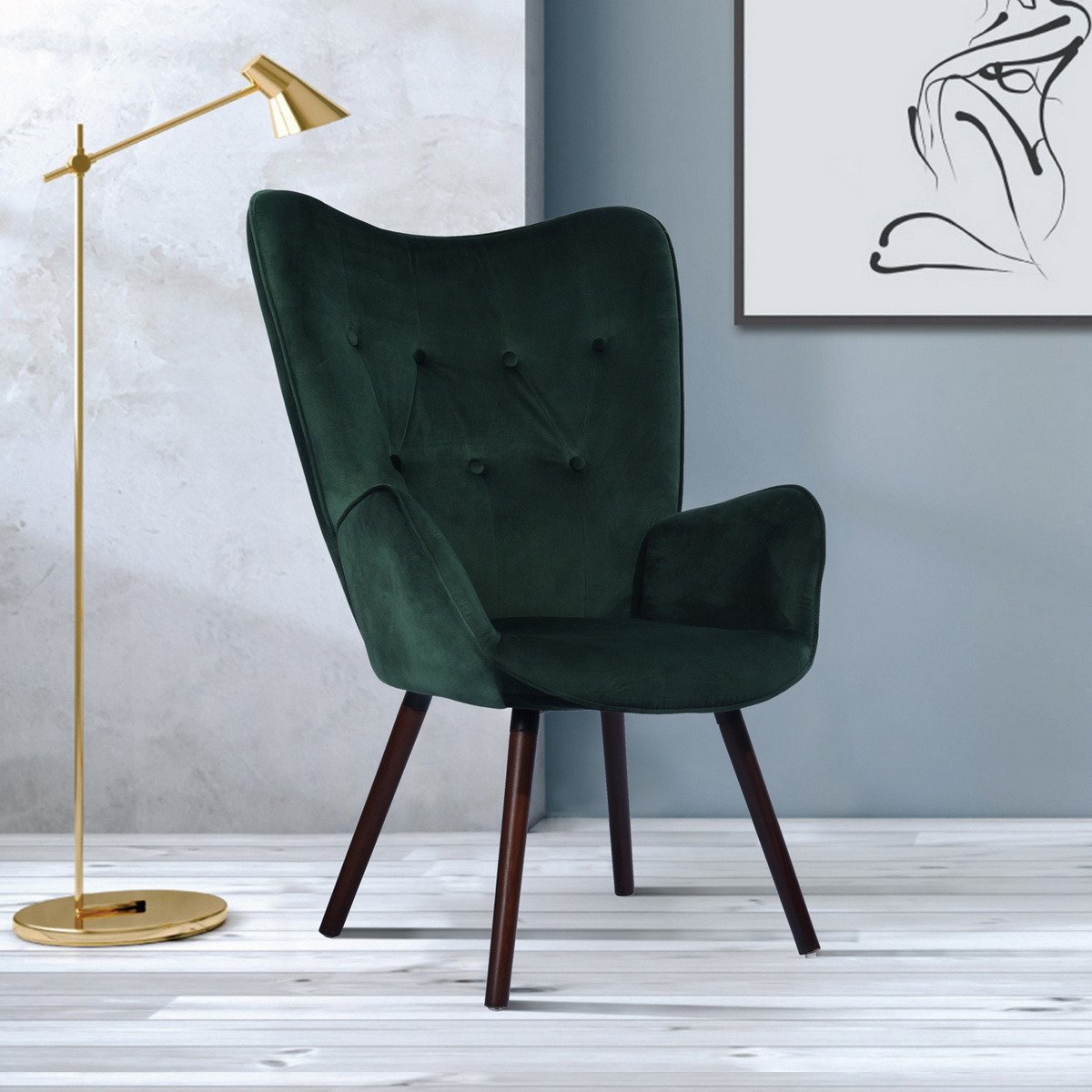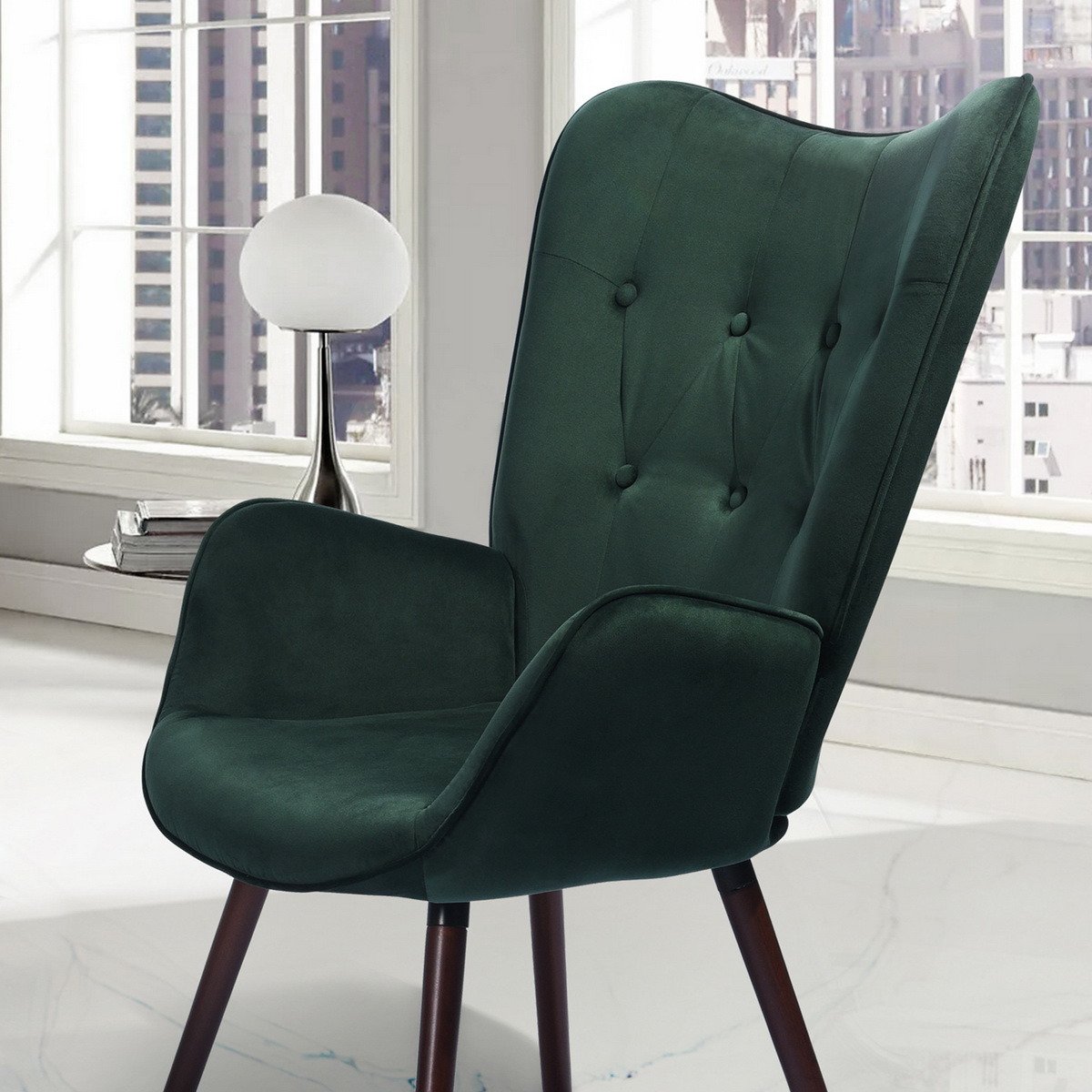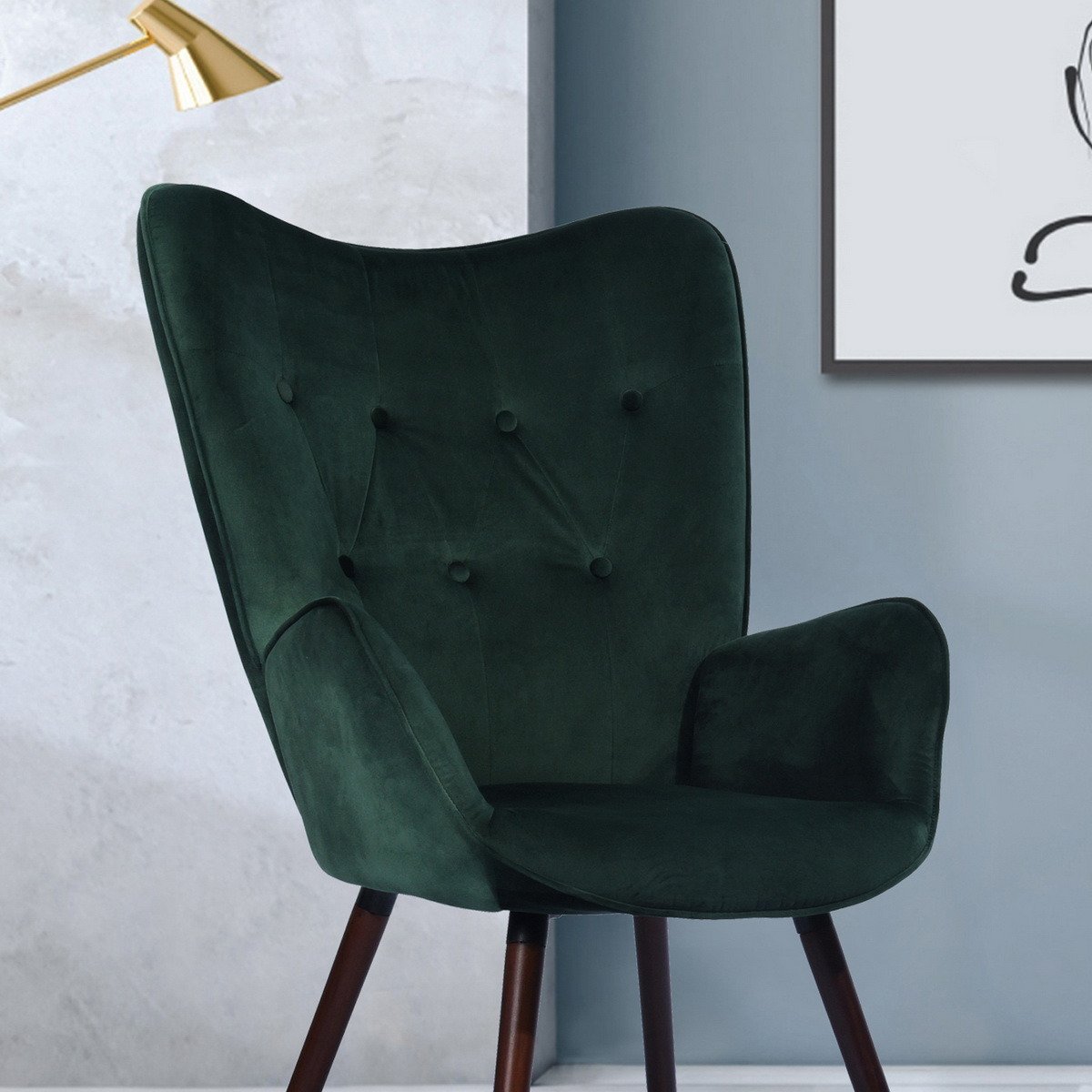 Home > Modern Wingback Accent Armchair Living Room Tufted Velvet Upholstery, DARK GREEN