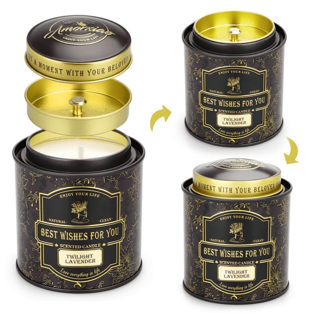 [long burn time]: 10 oz lavender soy candle for home scented, can last for 70 hours long-lasting burning time, guaranteed to bring you maximized relaxation. The hollow design at the bottom prevents the tin from burning the table.
