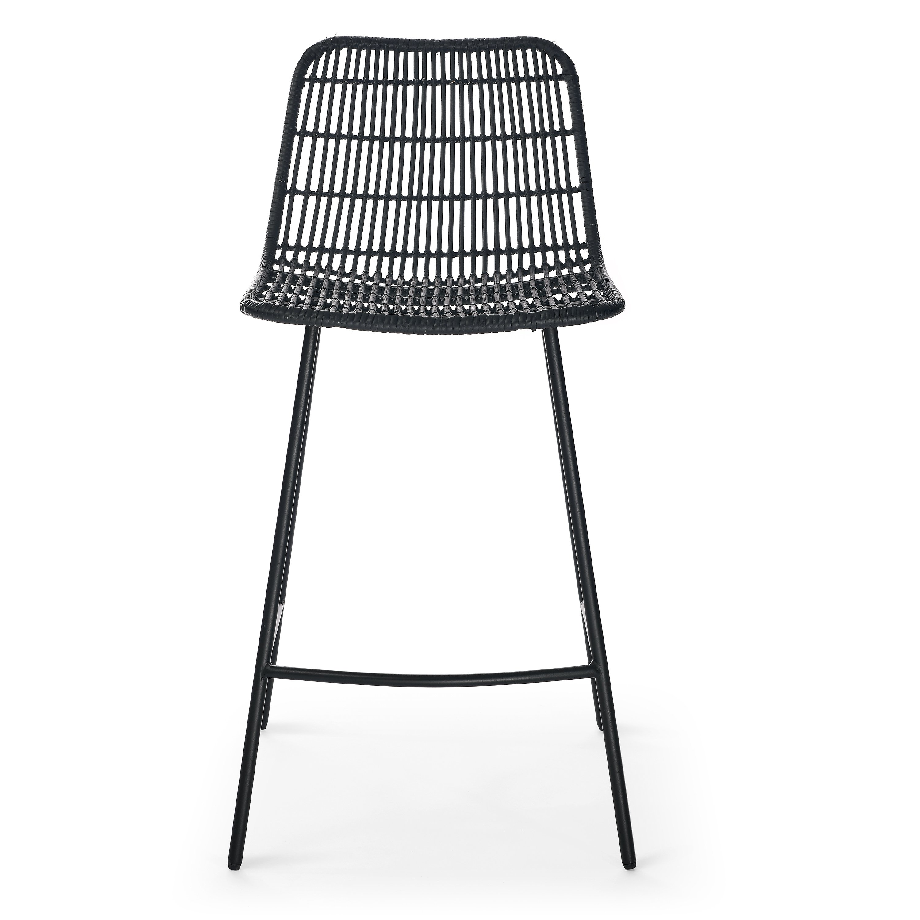 Home > Set of 2, Natural Rattan Indoor Counter Chair , Black Finish Steel legs,Black (17.5"x20"x34")